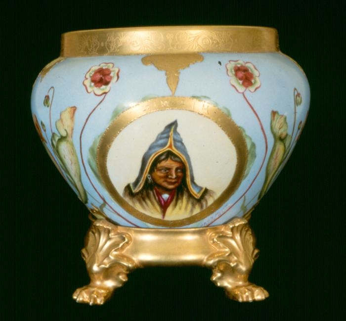 Another portrait of Morris, which appears on a ceramic bowl made by Alice Egan Hagen in 1920, appears to have been based on a watercolour by an artist named Valentine labelled “Christy Ann” (see an old photograph of that watercolor above).