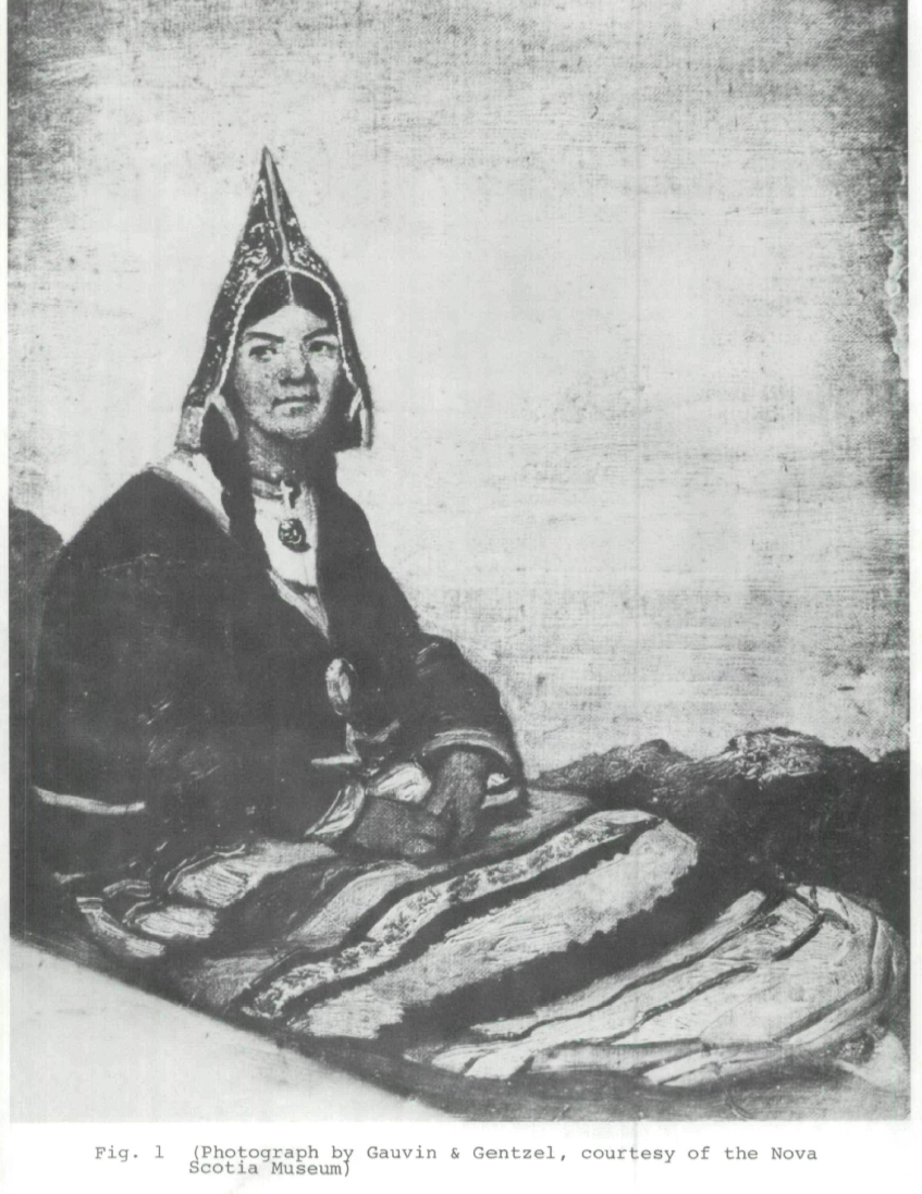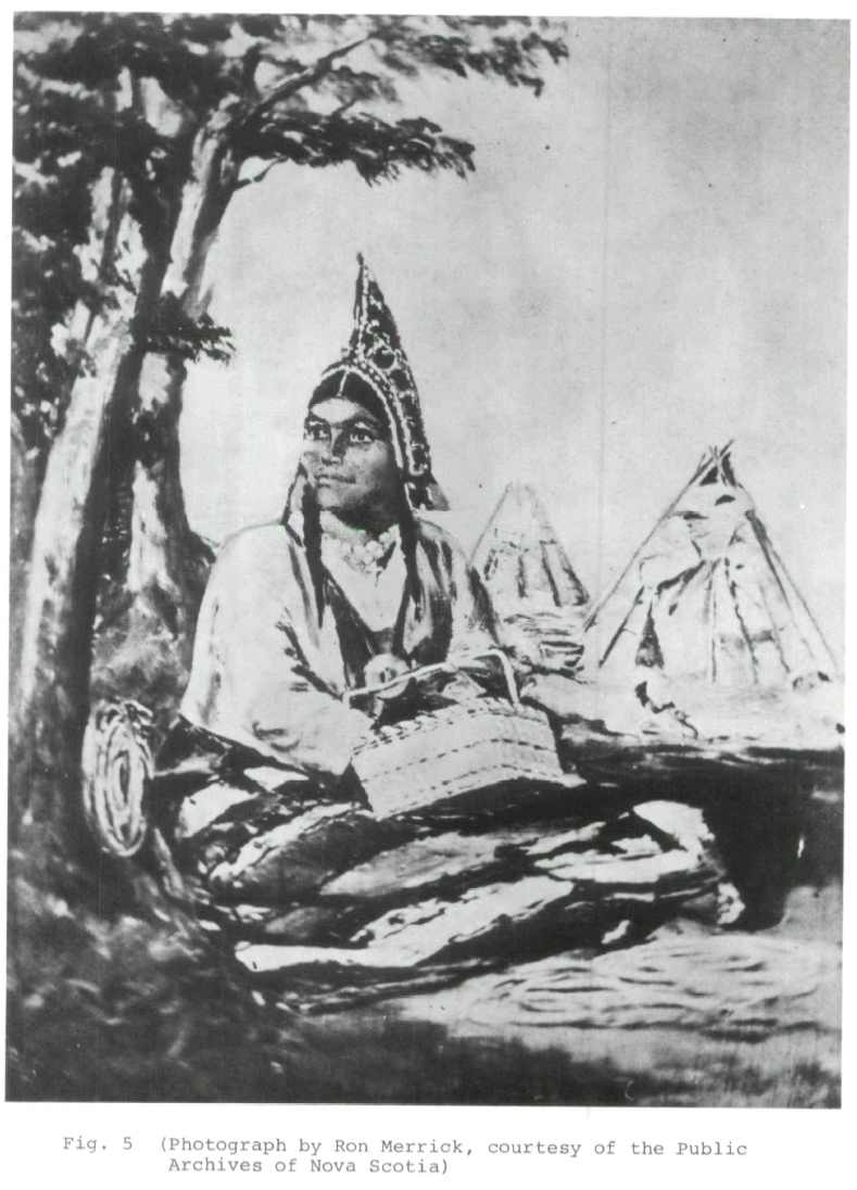 In the collection of the Public Archives df Nova Scotia is a photo of a drawing of a Micmac woman (fig. 5) attributed to Rebecca Crane Starr (1817-1902) of Halifax.
