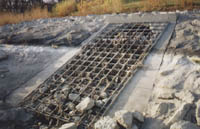 Johnny enters the land of the Strangers by going through on of the storm sewer outlets on the shore of the river. Here is a picture of it, securely bolted shut! The line across the picture is the high water mark.
