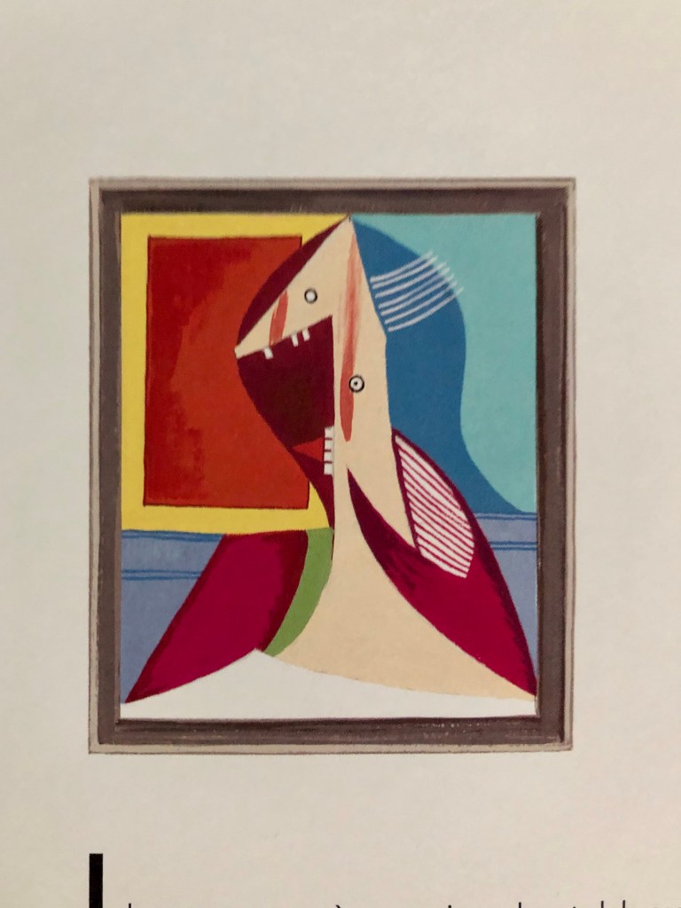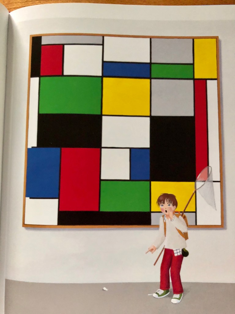 Might this possibly be viewed as a misuse of the original art? I find myself wondering if the addition of green in the first view of the painting has something to do with copyright restrictions.Perhaps Mondrian and Picasso, unlike most of the other artists in the book, haven’t been dead long enough to lack legal representation?