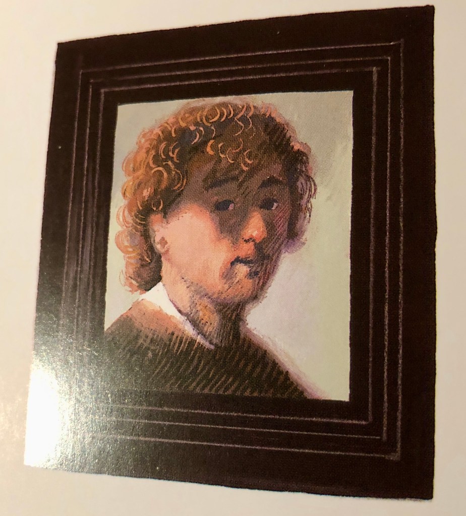 There are also images of what are clearly a Rembrandt self-portrait, Rodin’s Thinker, and a Jackson Pollack